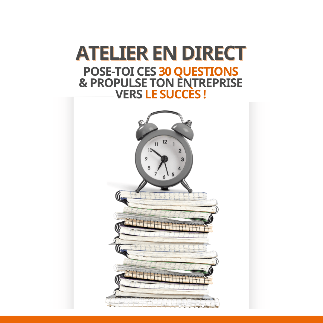 L'atelier et le cahier comprenant 30 questions pour te permettre de faire un bilan des 12 derniers mois et ainsi propulser ton entreprise vers le succès.